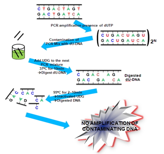 Figure 1. Prevention of carryover contamination by UDG enzyme and dUTP.