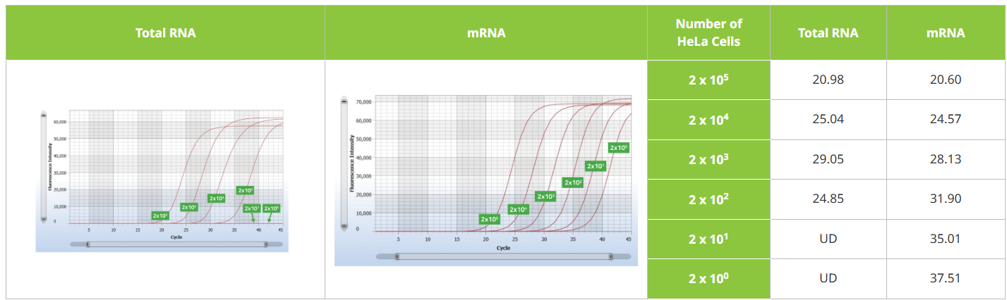 [Table] Ct values of HPRT1 detected from serial dilutions of HeLa cells. UD = undetermined.
